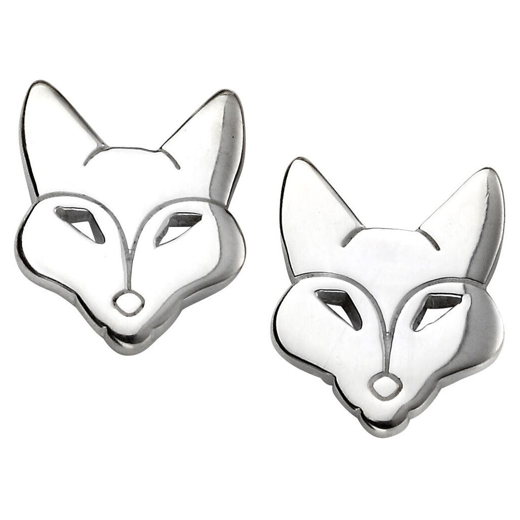 These sterling silver fox face stud earrings measures approximately 8mm across. They are a polished sterling silver finish.